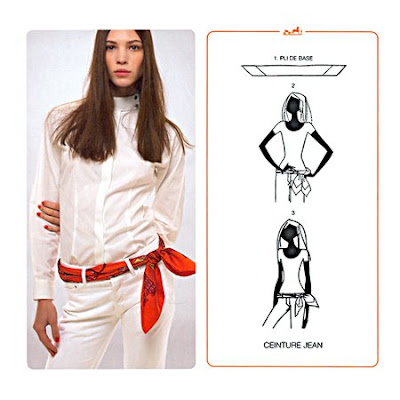 Un Hermès per la vita. Sfoggia anche tu il mitico foulard (ma in versione nastro, così spendi solo 100 euro) e infilalo come fosse una cintura nei passanti del jeans.